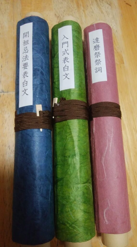 今までは紙に写したものを使っていましたが、今回は自分の趣味を活かして巻物を手作りしてみました。下賜されるものとは違ってとてもでこぼこしていて手作り感満載ですが、しばらく使ってみようと思います。