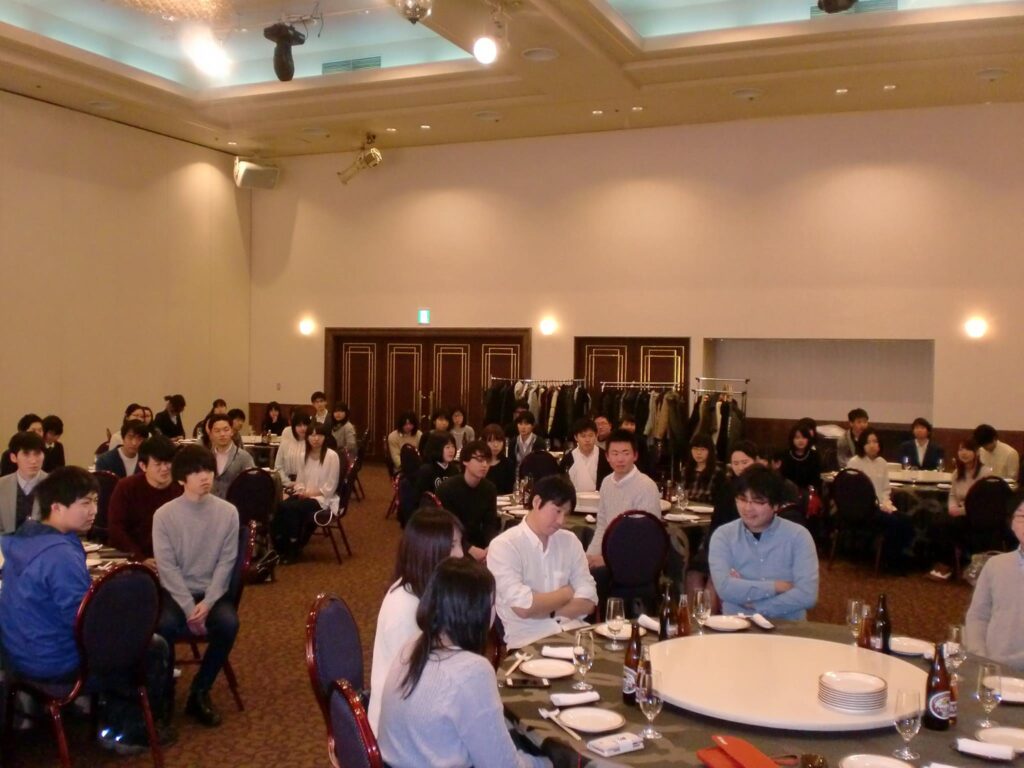 今日は山形大学少林寺拳法部の送別会,いわゆる追いコンがありました。今までは居酒屋の2階でぎゅうぎゅう詰めでやっていましたが,いよいよ飽和状態となり,今年初めて東京第一ホテル米沢での追いコンとなりました。あまりにも今までと雰囲気が違いすぎ,追いコン?という感じではありませんでしたが,スペースにゆとりもあり,歩き回って話すには十分でした。OBも遠くは愛知から来てくれました。
